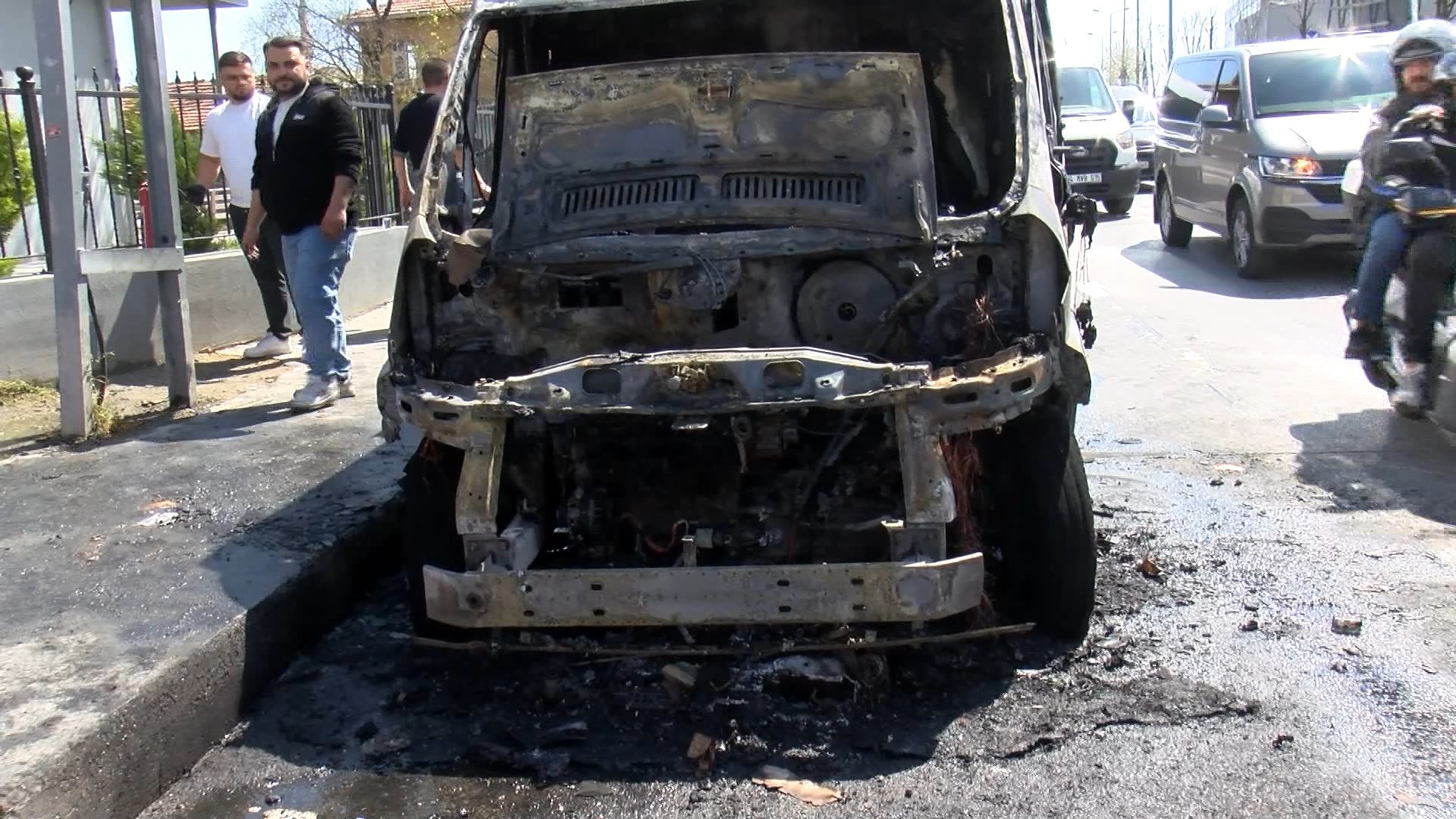 Yangın, saat 14.00 sıralarında Ziya Gökalp Mahallesi Hürriyet Bulvarı’nda seyir halinde olan 34 DOB 938 plakalı minibüste çıktı. Jant yüklü kapalı kasa minibüsün motor kısmında dumanların yükseldiğini gören şoför Burak Özkaya, yol kenarına çektiği araçtan araçtan indi. Kısa sürede büyüyen alevler minibüsün ön kısmını sardı.