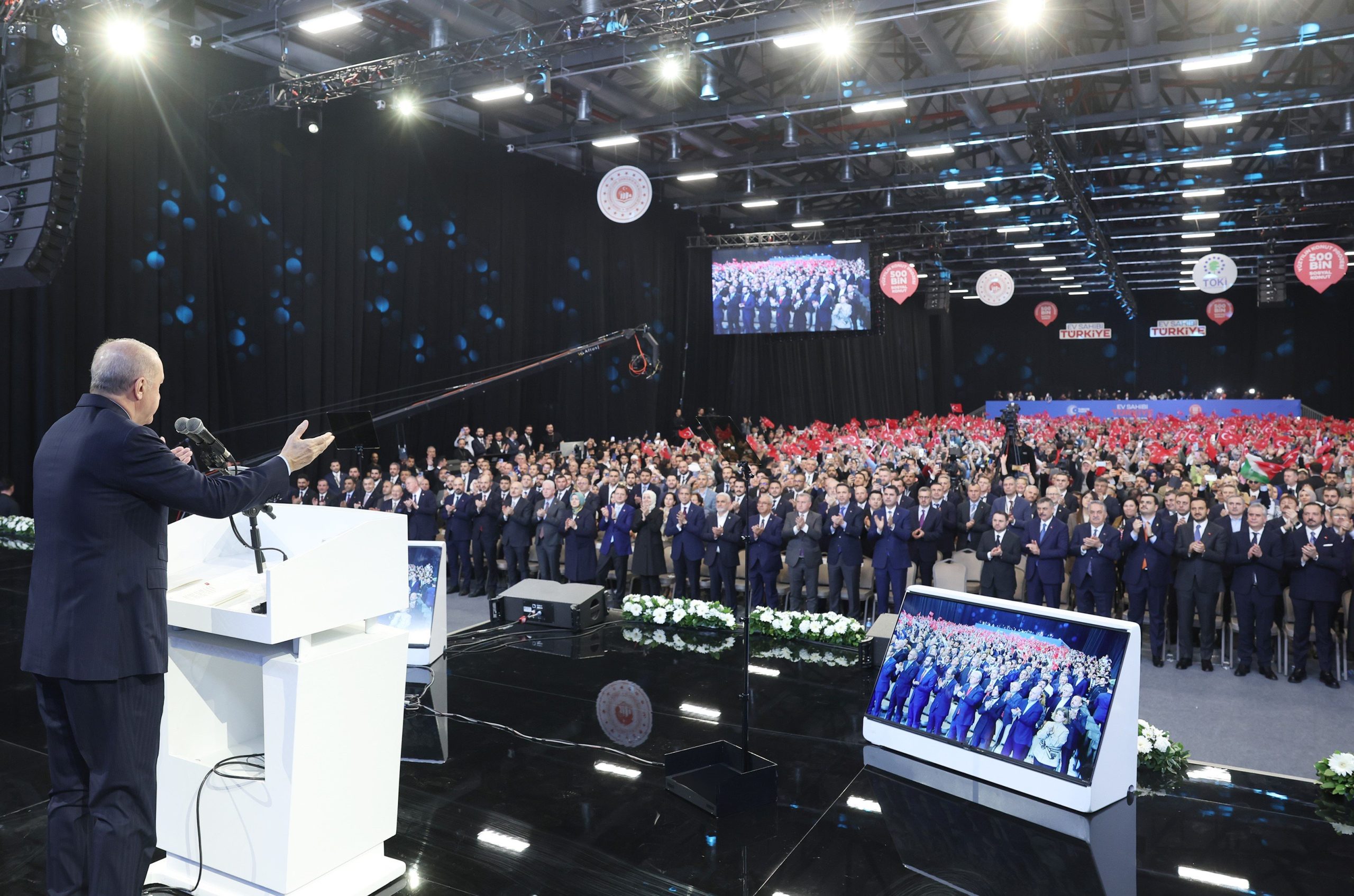 AK Parti olarak 23,5 yıldır şehirlerimizi abad etmenin millete hakkıyla hizmet etmenin gayreti içinde olduklarını belirten Cumhurbaşkanı Erdoğan, “Bilhassa şehirlerimizin altyapısını iyileştirmenin, depreme daha dirençli hale getirmenin samimi çabası içindeyiz. Sosyal konut ve kentsel dönüşüm hamlelerimiz bu gayretlerimizin en somut tezahürleridir. Şunu bugün büyük bir gururla ifade etmek isterim. TOKİ eliyle bugüne kadar tam 1 milyon 762 bin sosyal konutu milletimizin hizmetine sunduk. Bu konutlarla 6 milyondan fazla vatandaşımızı camileriyle, parklarıyla, yürüyüş yolları ve diğer sosyal donatılarıyla modern yaşam alanlarına kavuşturduk. Meseleyi sadece yeni konut üretimi olarak görmedik. Şehirlerimizin emniyetini sağlamak riskli yapı stoğunu azaltmak için kolları sıvadık. Bugüne kadar İstanbul’da 986 bin, Türkiye genelinde ise 2 milyon 262 bin bağımsız bölümü dönüştürmeyi başardık. İstanbul’da 232 bin 533 bağımsız bölümün inşa süreci, 125 binin proje süreci kentsel dönüşüm çalışmaları kapsamında devam ediyor. 81 ilimizde toplam 264 bin bağımsız bölümün yapımı da yine kentsel dönüşüm faaliyetleri çerçevesinde sürüyor. İstanbul’un dönüşüm sürecini daha da hızlandırmak için Yarısı Bizden kampanyasını hayata geçirdik. Bugün itibarıyla 316 bin bağımsız bölümü Yarısı Bizden kampanyasına dahil ettik. Kampanya kapsamında 83 bin bağımsız bölümde dönüşüm tamamlandı, 233 bin bağımsız bölümün ise proje ve inşa çalışmaları devam ediyor” dedi.